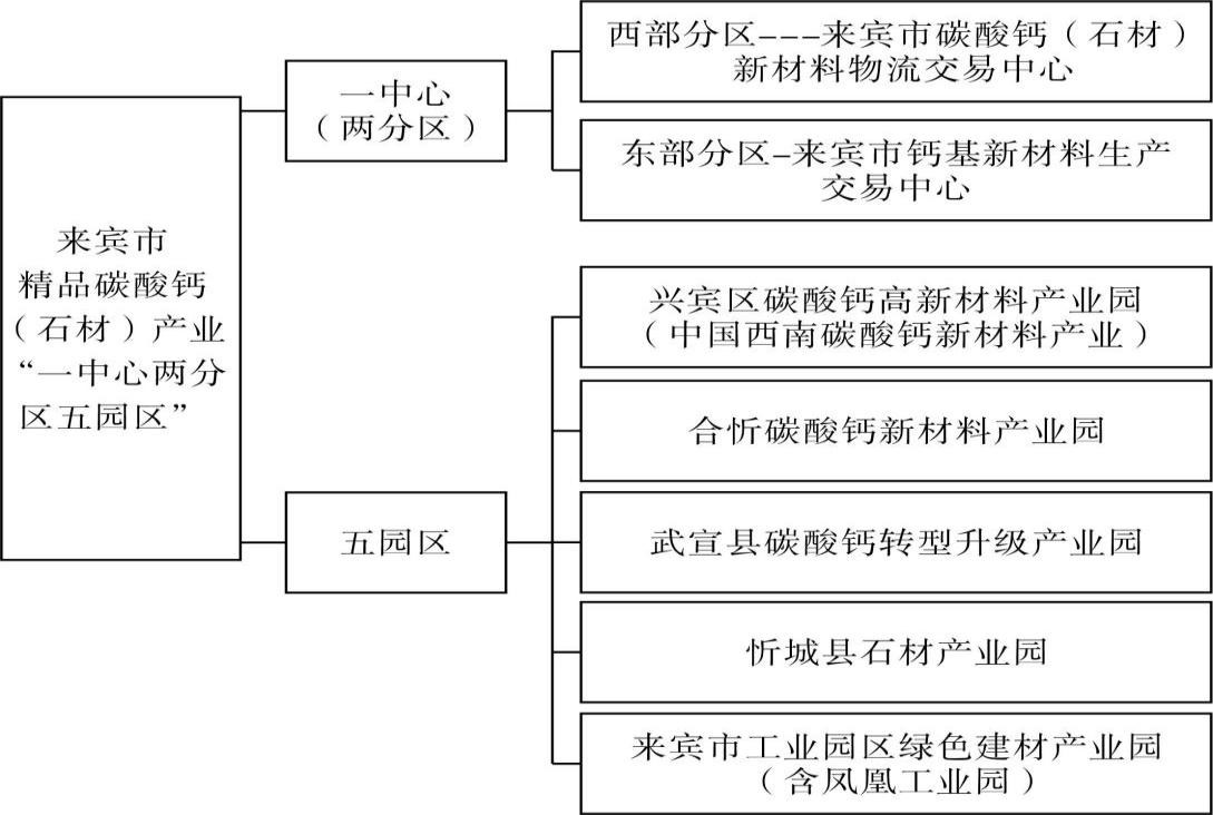 來(lái)賓市精品碳酸鈣(石材)產(chǎn)業(yè)總體布局示意圖