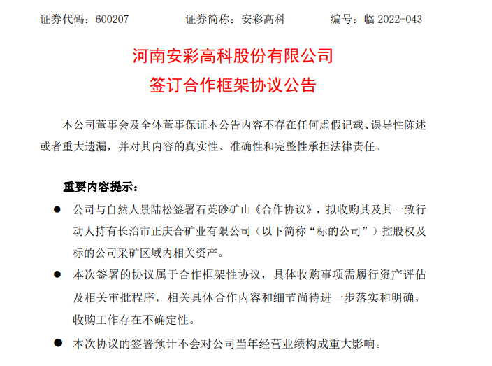 參考來源:證券時報、安彩高科關(guān)于簽訂框架協(xié)議的公告