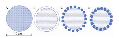A.混合式;B.層包覆式;C.粒子包覆式( 沉積型); D.粒子包覆式(嵌入型)