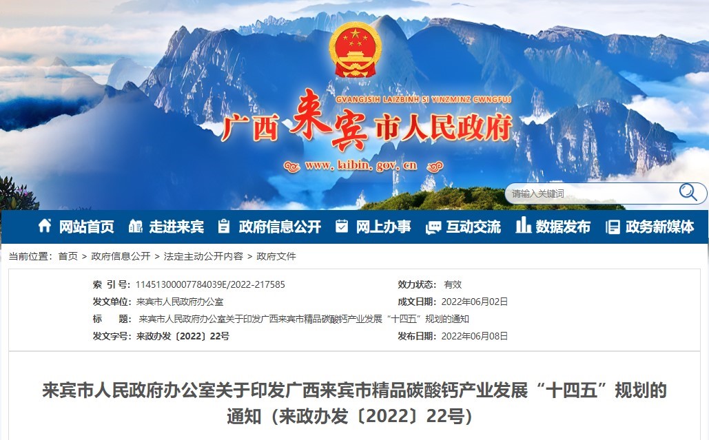 《來賓精品碳酸鈣產(chǎn)業(yè)發(fā)展“十四五”規(guī)劃》印發(fā)