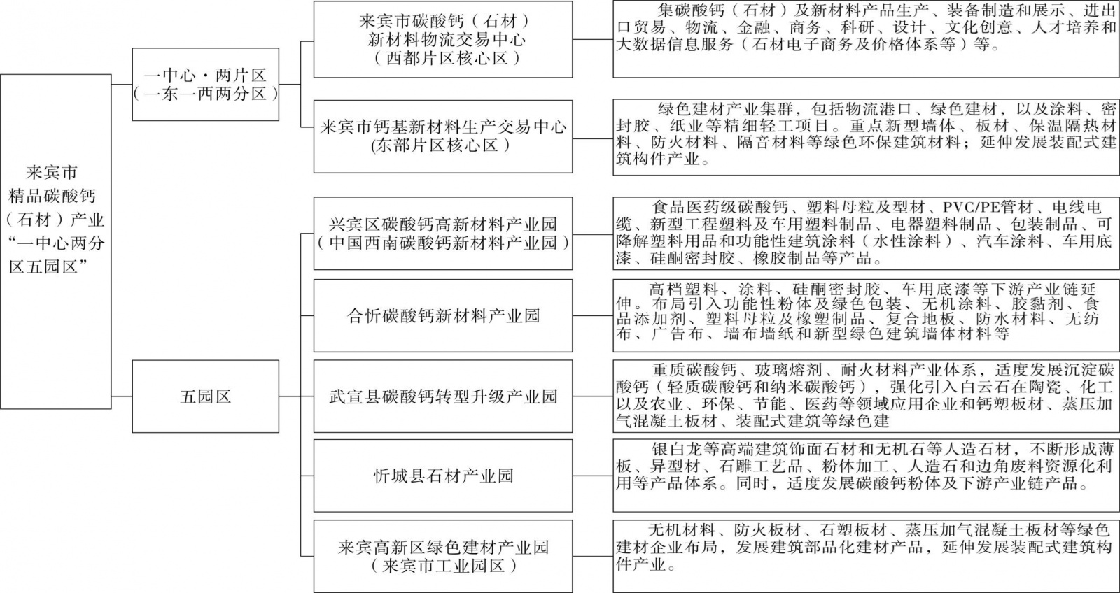 來賓市精品碳酸鈣(石材)產業(yè)空間布局和產業(yè)業(yè)態(tài)布局一覽表