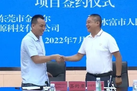 儀式上,水富市政府副市長(zhǎng)歐錫海與東莞市金泰爾能源科技有限公司董事長(zhǎng)李剛德簽署了項(xiàng)目投資協(xié)議。
