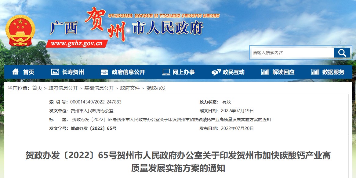 中國(guó)粉體網(wǎng)訊 2022年7月19日,賀州市人民政府辦公室公開(kāi)發(fā)布《賀州市加快碳酸鈣產(chǎn)業(yè)高質(zhì)量發(fā)展實(shí)施方案》(簡(jiǎn)稱:《方案》)。關(guān)于新《方案》有哪些作用,如何實(shí)施?粉體網(wǎng)編輯大家一起了解,看一下賀州發(fā)展碳酸鈣產(chǎn)業(yè)的智慧與魄力。