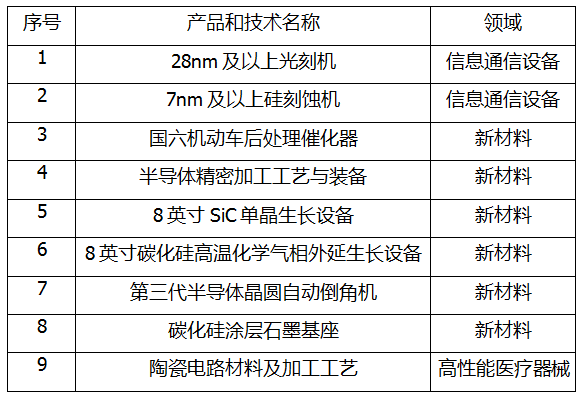 在制造工藝與設(shè)備方面,一批入選裝備需要配備大量先進陶瓷材料。例如,在光刻機中,碳化硅陶瓷已被用于工件臺、導(dǎo)軌、反射鏡、吸盤、手臂等;在刻蝕裝備中,碳化硅、氮化鋁、氧化鋁、氮化硅、氧化釔等陶瓷材料已被重點用于窗視鏡,氣體分散盤,噴嘴,絕緣環(huán),蓋板,聚焦環(huán)和靜電吸盤等。