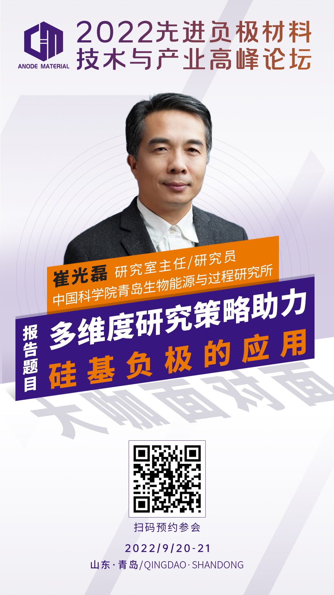 針對各類負(fù)極材料的產(chǎn)業(yè)化技術(shù)與國內(nèi)外市場狀況,中國粉體網(wǎng)將于9月20-21日在青島舉辦2022先進(jìn)負(fù)極材料技術(shù)與產(chǎn)業(yè)高峰論壇。屆時,中國科學(xué)院青島生物能源與過程研究所崔光磊研究員將作題為《多維度研究策略助力硅基負(fù)極的應(yīng)用》的報告。報告將對硅基負(fù)極的改善策略進(jìn)行講解,涉及預(yù)鋰化調(diào)控、交聯(lián)粘結(jié)劑合成、材料改性、電解質(zhì)設(shè)計、電芯制造技術(shù)創(chuàng)新等方面,同時,也會對研究所團(tuán)隊開發(fā)出的長壽命高安全硅基固態(tài)電池成果進(jìn)行介紹。