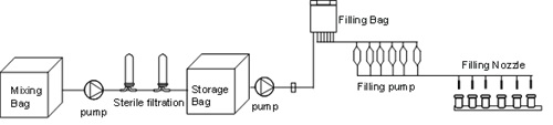 圖1 典型一次性灌裝系統(tǒng)工藝流程圖