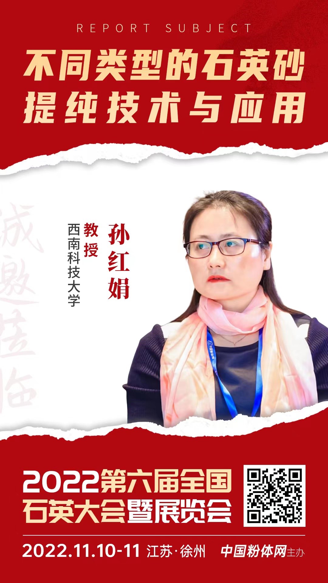 2022年11月10日至11日,中國粉體網(wǎng)將在江蘇徐州舉辦“2022第六屆全國石英大會暨展覽會”。來自西南科技大學(xué)的孫紅娟教授將帶來題為《不同類型的石英砂提純技術(shù)與應(yīng)用》的報告。
