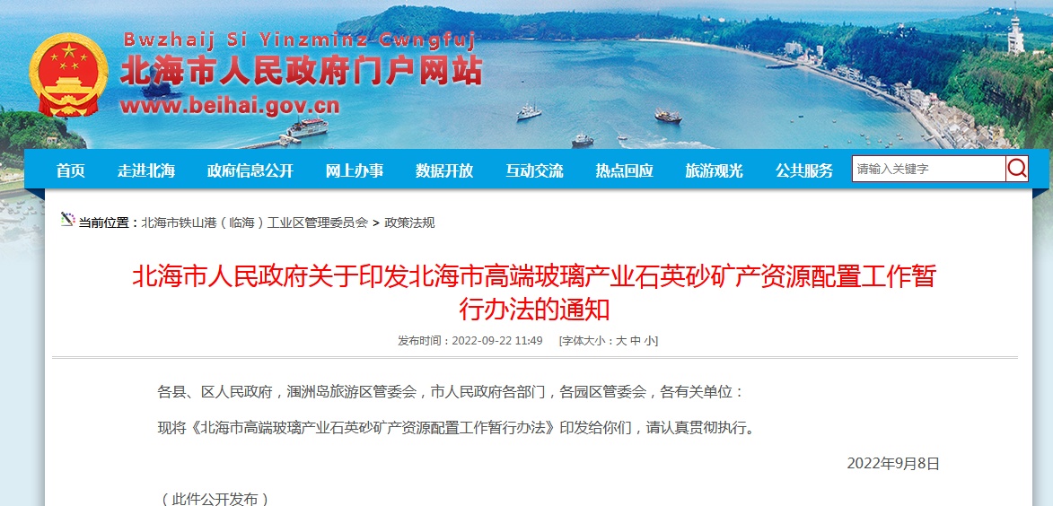 認(rèn)真貫徹落實(shí)習(xí)近平總書記視察廣西及北海重要講話精神,充分發(fā)揮北海向海經(jīng)濟(jì)優(yōu)勢(shì),依法依規(guī)做好采礦權(quán)出讓工作,統(tǒng)籌利用好我市優(yōu)質(zhì)石英砂礦產(chǎn)資源,推動(dòng)高端玻璃產(chǎn)業(yè)高質(zhì)量發(fā)展。