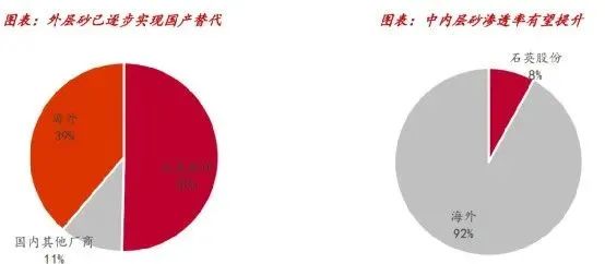 光伏石英坩堝產(chǎn)品端:光伏行業(yè)由于產(chǎn)品精密度程度高、技術(shù)發(fā)展快,對石英坩堝的純度、精度要求日益嚴(yán)格。我國的石英制品行業(yè)起步較晚,只有少數(shù)規(guī);髽I(yè)的石英坩堝技術(shù)方面達(dá)到先進(jìn)水平。技術(shù)上來看,近幾年我國石英制品行業(yè)的技術(shù)進(jìn)步較為明顯,尤其是石英坩堝技術(shù)水平與國外企業(yè)產(chǎn)品的差距逐步縮小,在坩堝尺寸、純度、拉晶時(shí)間和拉晶次數(shù)等方面均取得顯著進(jìn)步。此外,國內(nèi)石英坩堝具有一定的成本優(yōu)勢,在質(zhì)量和性能等方面與進(jìn)口石英坩堝的差距正逐漸縮小。這些都為國產(chǎn)化創(chuàng)造了條件。從細(xì)分部件來看,外層砂已基本實(shí)現(xiàn)國產(chǎn)替代,中內(nèi)層砂產(chǎn)品和客戶認(rèn)可度逐步提升。目前石英股份的高純石英砂仍以外層砂為主,我們預(yù)計(jì)石英股份在中內(nèi)層砂質(zhì)量以及客戶認(rèn)可度上均有提升,并有望逐步提高中內(nèi)層砂的滲透率。我們預(yù)計(jì)21年石英股份外層砂份額約50%,中內(nèi)層砂份額約8%。