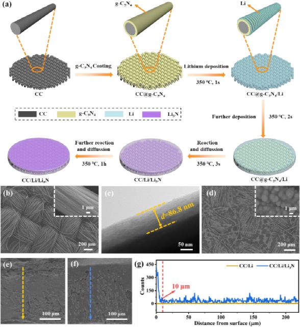 圖1.CC@g-C3N4及CC/Li/Li3N的制備過(guò)程示意圖和微觀結(jié)構(gòu)表征
