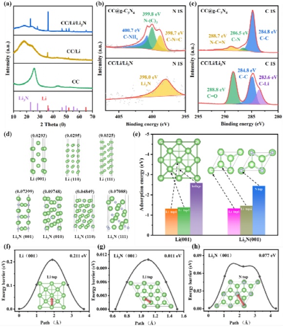 圖2.CC/Li/Li3N的物性表征分析及密度泛函理論計(jì)算(DFT)