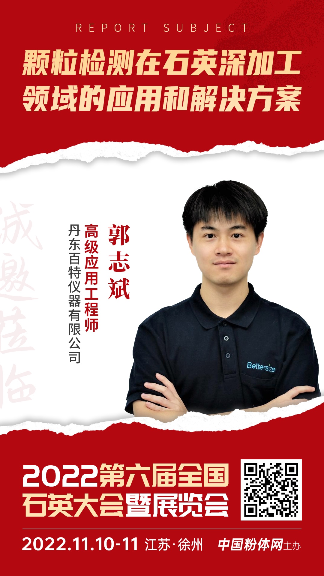 2022年11月10日至11日,中國(guó)粉體網(wǎng)將在江蘇徐州舉辦“2022第六屆全國(guó)石英大會(huì)暨展覽會(huì)”。來(lái)自丹東百特儀器有限公司的高級(jí)應(yīng)用工程師郭志斌將帶來(lái)題為《顆粒檢測(cè)在石英深加工領(lǐng)域的應(yīng)用和解決方案》的報(bào)告。