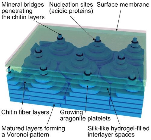 近日,中國科學(xué)技術(shù)大學(xué)俞書宏院士團(tuán)隊(duì)展望了一種新興制造策略,通過甲殼素基質(zhì)導(dǎo)向的文石礦化形成珍珠層,這種“框架誘導(dǎo)礦化策略”將化學(xué)礦化與物理組裝相相結(jié)合,可以有效解決礦物基結(jié)構(gòu)材料在制備過程中“結(jié)構(gòu)精度與制備效率”無法兼顧的矛盾。合肥微尺度物質(zhì)科學(xué)國家研究中心茅瓅波副研究員為該論文的第一作者。