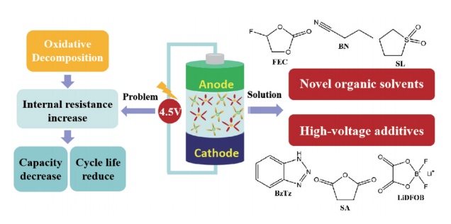 傳統(tǒng)電解液在高壓下存在的問(wèn)題及提高電解液工作電壓的解決方案(來(lái)源:黃國(guó)勇等,鋰離子電池高壓電解液)