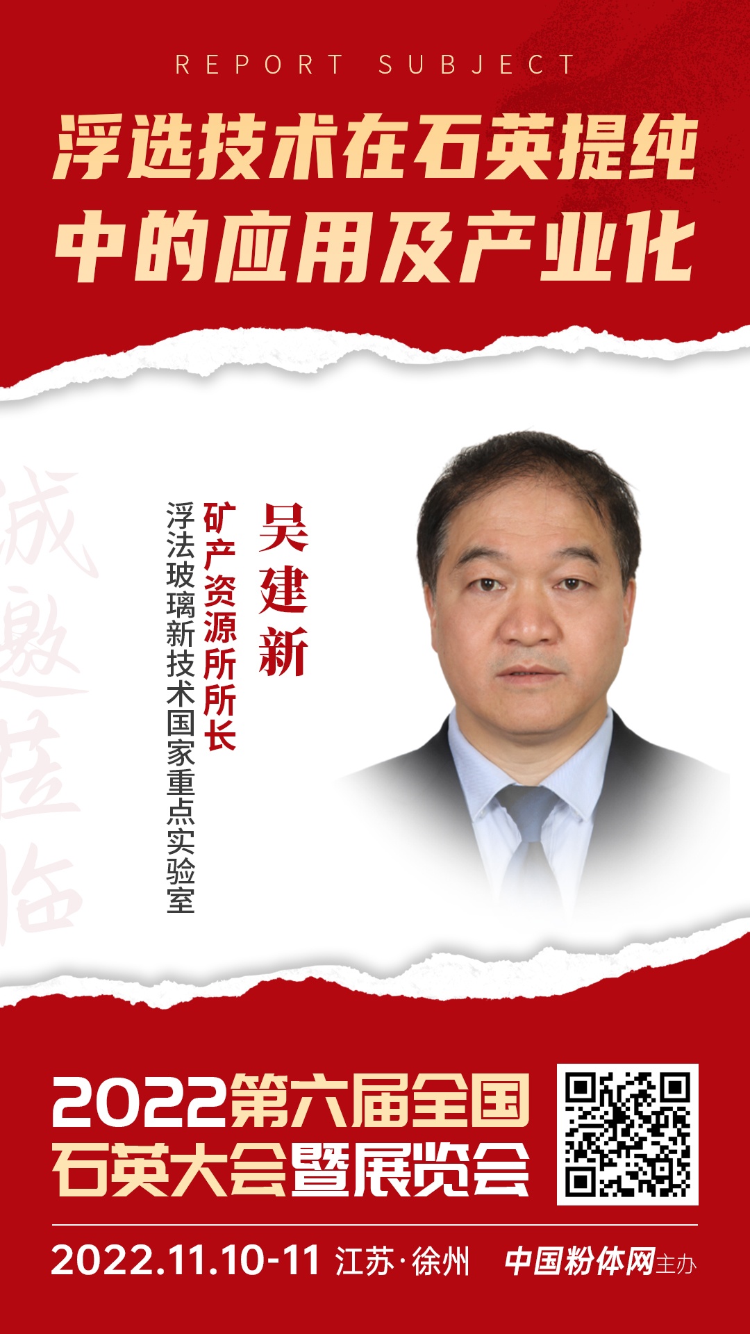 屆時(shí),吳所長將做《浮選技術(shù)在石英提純中的應(yīng)用及產(chǎn)業(yè)化》的精彩報(bào)告,他將為我們詳細(xì)講解浮選的原理及石英浮選的基本流程,并分享產(chǎn)業(yè)化案例及技術(shù)經(jīng)濟(jì)分析。如果你關(guān)心你的石英礦石適合用哪種浮選工藝提純、浮選出來的產(chǎn)品應(yīng)用在哪類市場,那么實(shí)戰(zhàn)專家吳建新所長的報(bào)告絕對不容錯過!