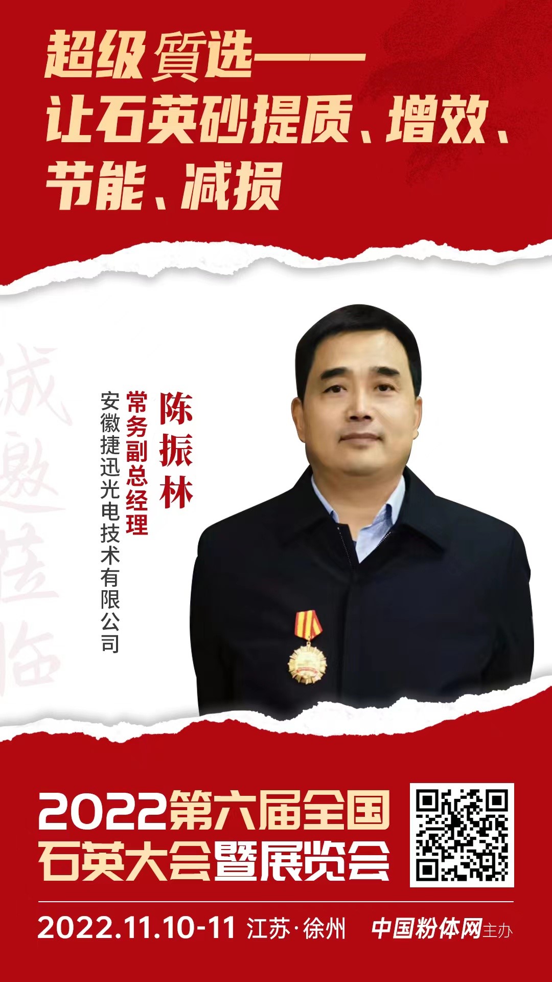 2022年11月10日至11日,中國(guó)粉體網(wǎng)將在江蘇徐州舉辦“2022第六屆全國(guó)石英大會(huì)暨展覽會(huì)”。來自安徽捷迅光電技術(shù)有限公司的常務(wù)副總經(jīng)理陳振林將帶來題為《超級(jí)質(zhì)選——讓石英砂提質(zhì)、增效、節(jié)能、減損》的報(bào)告。