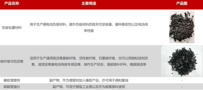 信德新材主要產(chǎn)品包括鋰電負(fù)極包覆材料、橡膠增塑劑、碳纖維可紡瀝青、裂解萘餾分等。