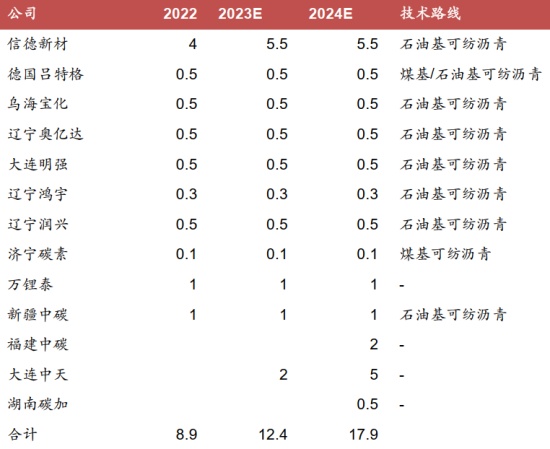 負(fù)極包覆材料公司產(chǎn)能對(duì)比