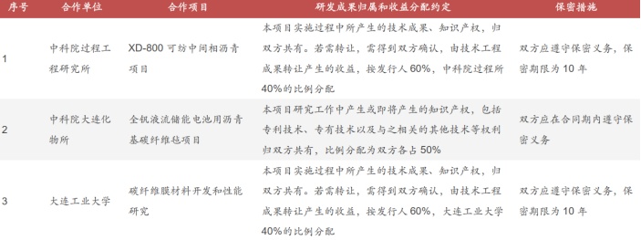 截至2022年8月,信德新材共取得74項(xiàng)專利,其中5項(xiàng)專利為發(fā)明專利,69項(xiàng)專利為實(shí)用新型專利。公司研發(fā)投入持續(xù)增長(zhǎng),與多所高校建立長(zhǎng)期合作關(guān)系。與中科院、大連化物所等科研機(jī)構(gòu)進(jìn)行聯(lián)合研發(fā),開展了XD-800可紡中間相瀝青、全釩液流儲(chǔ)能電池碳?xì)蛛姌O、碳纖維膜材料等應(yīng)用研發(fā),致力于將公司打造成為行業(yè)領(lǐng)先、品類豐富的碳基新型材料供應(yīng)商。