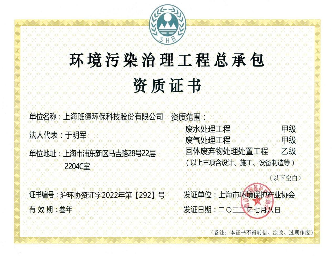 上海班德環(huán)保科技股份有限公司位于上海市浦東新區(qū),母公司上海班德環(huán)保設(shè)備有限公司成立于2009年4月,注冊資金3200萬元(實繳)。公司是一家從事研發(fā)與生產(chǎn)環(huán)保設(shè)備、總承包廢水處理工程與廢氣處理工程、從事環(huán)保設(shè)施專業(yè)運營的環(huán)保公司,擁有環(huán)境污染治理工程設(shè)計、施工和總承包資質(zhì)(廢水甲級、廢氣甲級、固體廢棄物乙級)。公司是上海市高新技術(shù)企業(yè)(證書編號GR202131002396),是上海市環(huán)保協(xié)會常務(wù)理事單位,是中國非金屬礦工業(yè)協(xié)會常務(wù)理事單位,是中國螢石協(xié)會常務(wù)理事單位,是中國石墨協(xié)會常務(wù)理事單位,是中國氟硅有機材料工業(yè)協(xié)會理事會員單位,是中國稀土行業(yè)協(xié)會和贛州市鎢業(yè)協(xié)會的會員單位。公司擁有一種全自動高效廢水處理過濾器、一種尾礦干排技術(shù)(發(fā)明專利號ZL201310034228.8)等多項專利設(shè)備和專利技術(shù),其中一種全自動高效廢水處理過濾器(即班德過濾器,專利號ZL201220511324.8)被中科院鑒定為國內(nèi)領(lǐng)先技術(shù),入選上海市科技創(chuàng)新基金項目(項目編號1405H207500),入選上海市高新技術(shù)成果轉(zhuǎn)化項目(項目編號201503182)。公司技術(shù)研發(fā)、裝備制造實力雄厚,為用戶提供環(huán)保方案設(shè)計、環(huán)保設(shè)備制造、環(huán)保工程安裝調(diào)試及完善的售后服務(wù)。