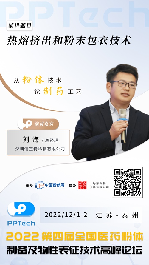 針對(duì)制藥工藝中的粉末包衣及熱熔擠出工藝,如何選擇合適的配套儀器設(shè)備?2022年12月1-2日,中國(guó)粉體網(wǎng)將在江蘇泰州碧桂園鳳凰酒店舉辦“第四屆全國(guó)醫(yī)藥粉體制備及物性表征技術(shù)高峰論壇”,屆時(shí)會(huì)邀請(qǐng)來(lái)自深圳信宜特科技有限公司的劉?偨(jīng)理作《粉末包衣的應(yīng)用和熱熔擠出的工藝放大》報(bào)告,報(bào)告主講人基于多年制藥工藝與技術(shù)的經(jīng)驗(yàn),通過(guò)以往的成功案例,同時(shí)結(jié)合公司的設(shè)備優(yōu)勢(shì)給大家?guī)?lái)一站式解決方案。