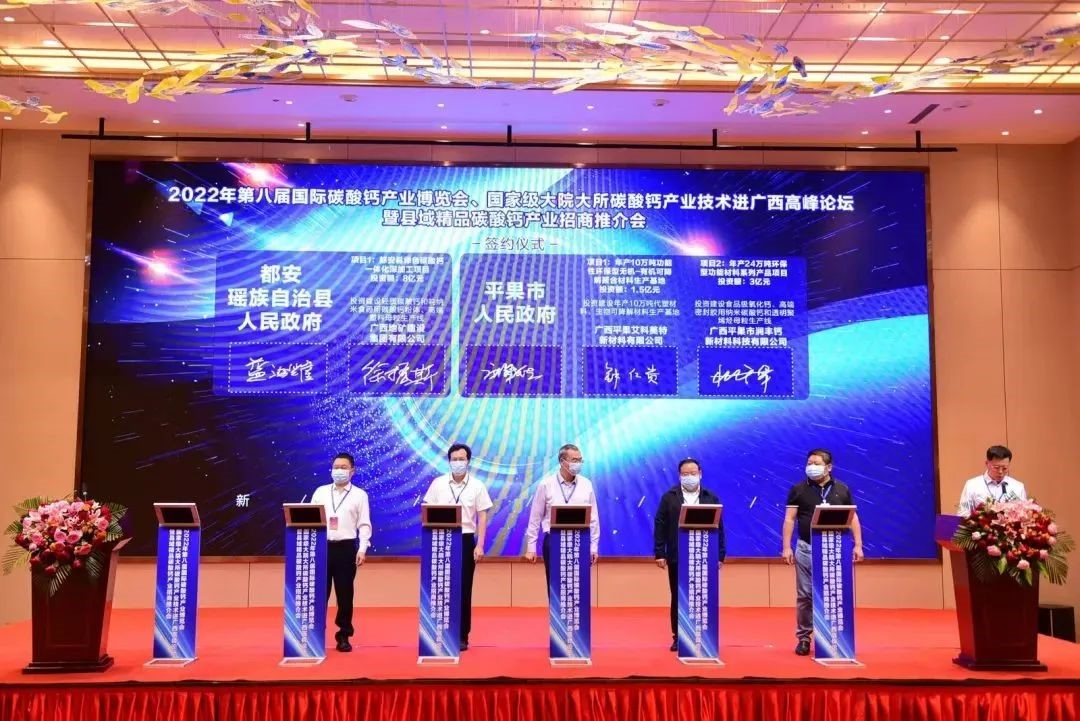 中國(guó)粉體網(wǎng)訊 11月4~5日,廣西舉行縣域精品碳酸鈣產(chǎn)業(yè)招商推介會(huì)”,玉林市(北流市、興業(yè)縣)、防城港市(上思縣)、來賓市(合山市)、覃塘區(qū)、都安瑤族自治縣、平果市等8個(gè)市、縣域22家企業(yè)簽約投資合作項(xiàng)目18項(xiàng),投資總金額約114億元。其中,鈣基材料生產(chǎn)與應(yīng)用項(xiàng)目11個(gè),簽訂投資近80億元。