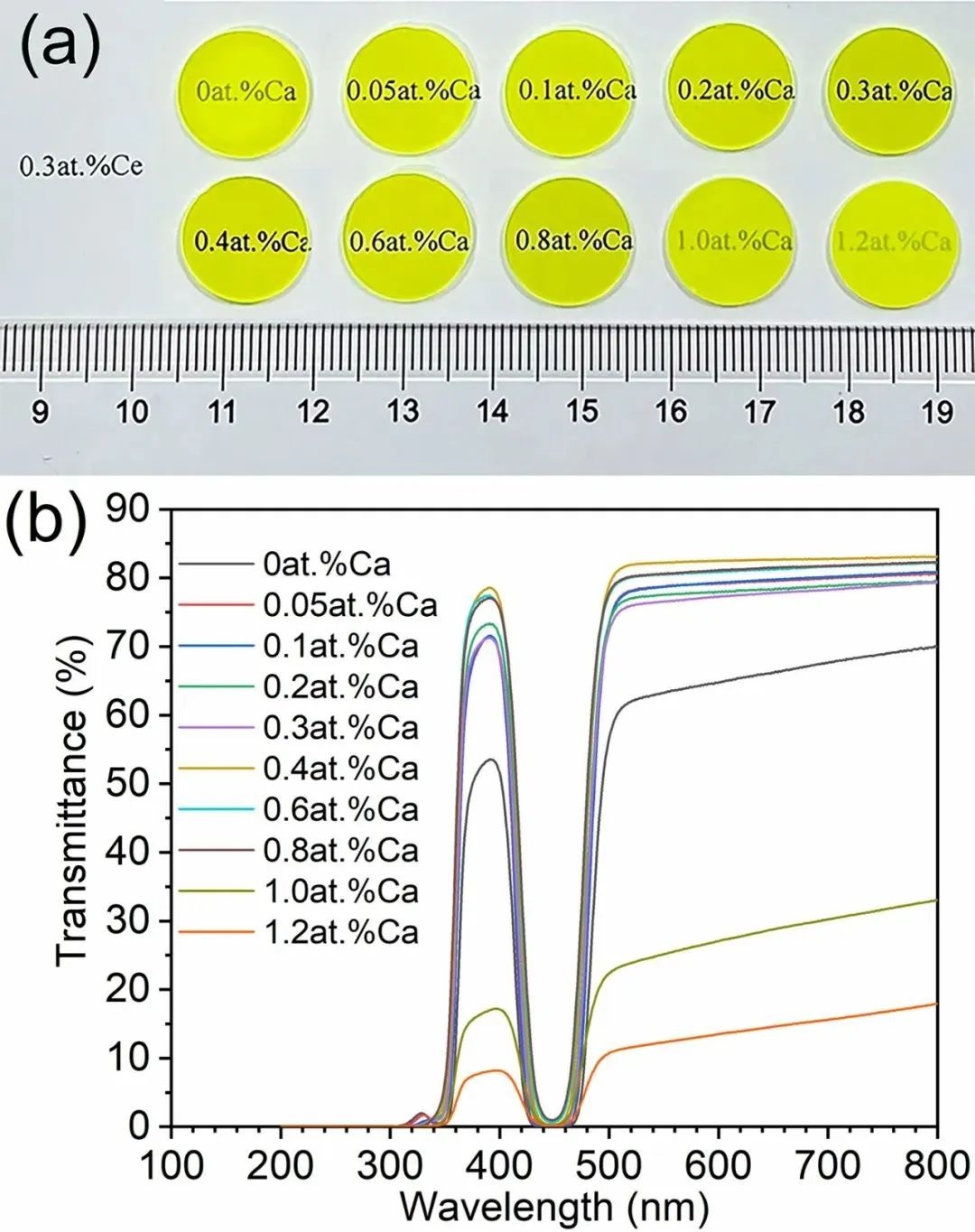 不同Ca2+摻雜濃度Ce,Ca:LuAG閃爍陶瓷的實物照片