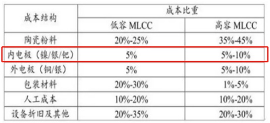 陶瓷粉體及電極漿料是MLCC產(chǎn)業(yè)鏈上的最重要一環(huán)。隨著MLCC向高容量、小尺寸、高可靠性的方向發(fā)展,生產(chǎn)成本也不斷增加,于是開發(fā)賤金屬電極。以Ni為內(nèi)電極,Cu為端電極,逐漸替代貴金屬電極,成為MLCC的發(fā)展趨勢。鎳粉作為陶瓷電容內(nèi)電極材料有成本低、電化學(xué)穩(wěn)定性好、電極連接的可靠性高、機(jī)械強(qiáng)度高、耐腐蝕性和耐熱性好、電阻率小、可提高阻抗頻率等優(yōu)勢。目前MLCC用鎳粉廠商主要集中在日本。
