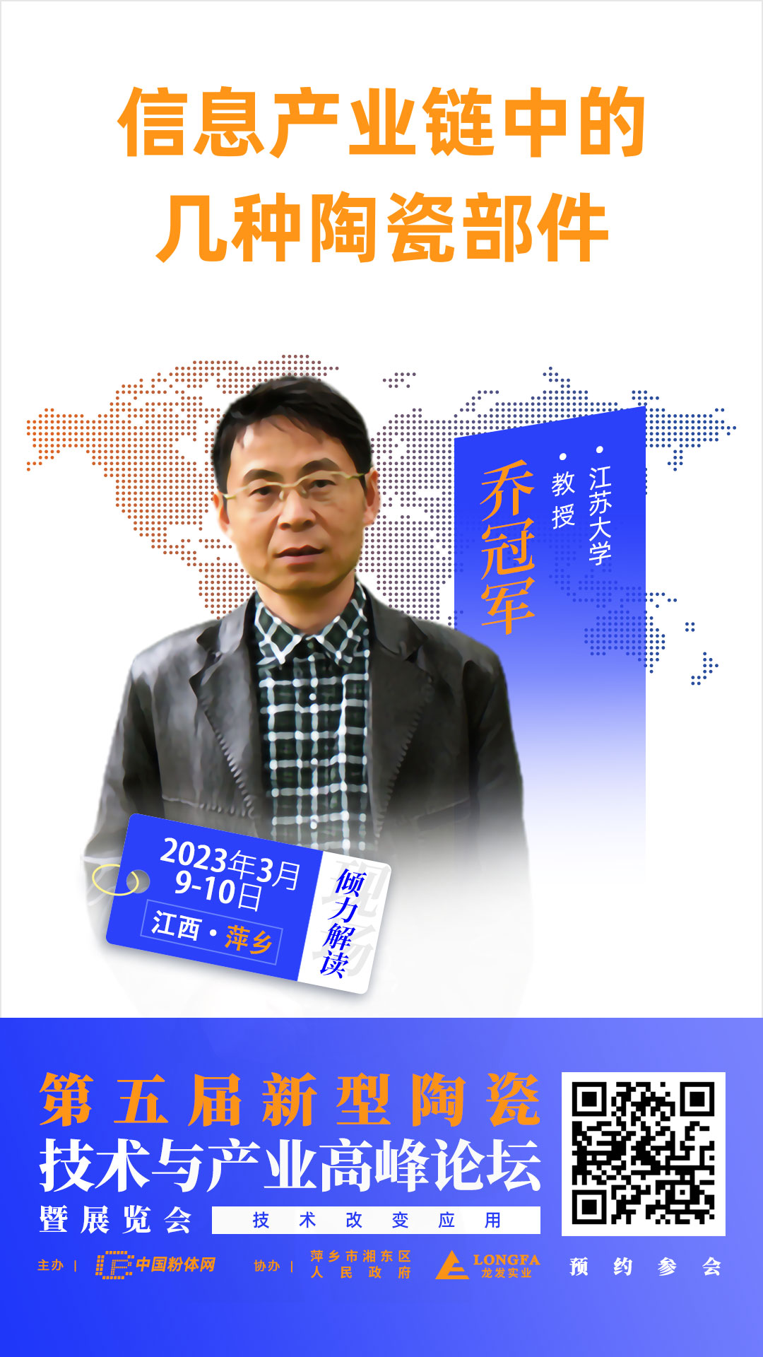 2023年3月9-10日,中國粉體網(wǎng)將在江西萍鄉(xiāng)舉辦“2022第五屆新型陶瓷技術(shù)與產(chǎn)業(yè)高峰論壇”,我們有幸邀請到江蘇大學(xué)喬冠軍教授作題為《信息產(chǎn)業(yè)鏈中的幾種陶瓷部件》的報(bào)告。喬冠軍教授將在報(bào)告中重點(diǎn)介紹芯片制程設(shè)備等離子刻蝕腔體用關(guān)鍵陶瓷部件,以及電容式陶瓷壓力傳感器和激光能量計(jì)等若干前端元器件對陶瓷材料的要求和面臨的挑戰(zhàn),并針對結(jié)構(gòu)陶瓷如何走向高端化和功能化應(yīng)用談一些體會和認(rèn)識。