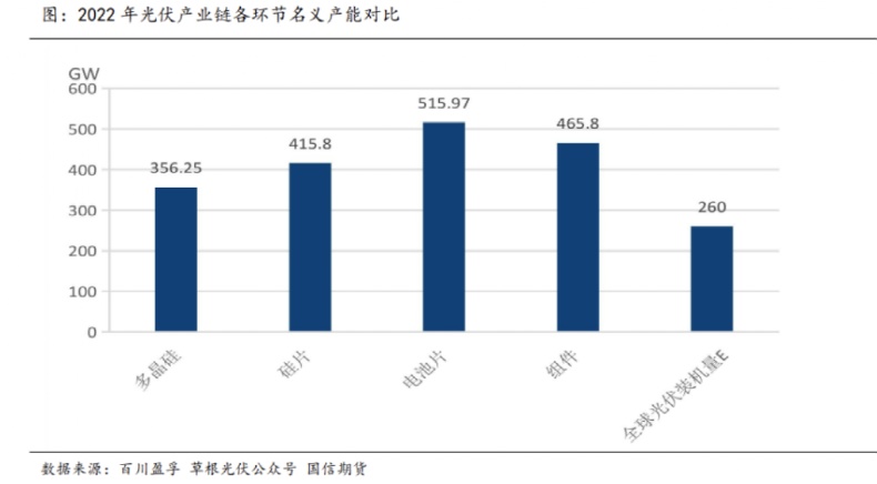 國信期貨方面稱,到2023年隨著多晶硅新增產(chǎn)能的不斷釋放,多晶硅價(jià)格將有可能從高位回調(diào),從而帶動光伏產(chǎn)業(yè)鏈價(jià)格下行。