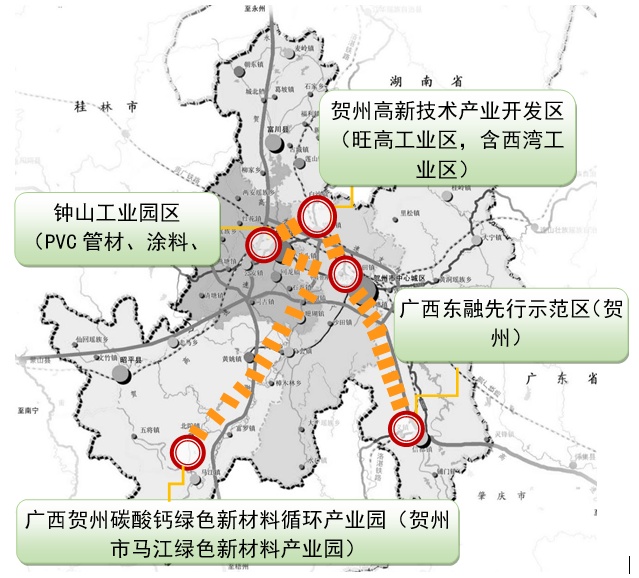 賀州石材碳酸鈣產(chǎn)業(yè)總體布局示意圖