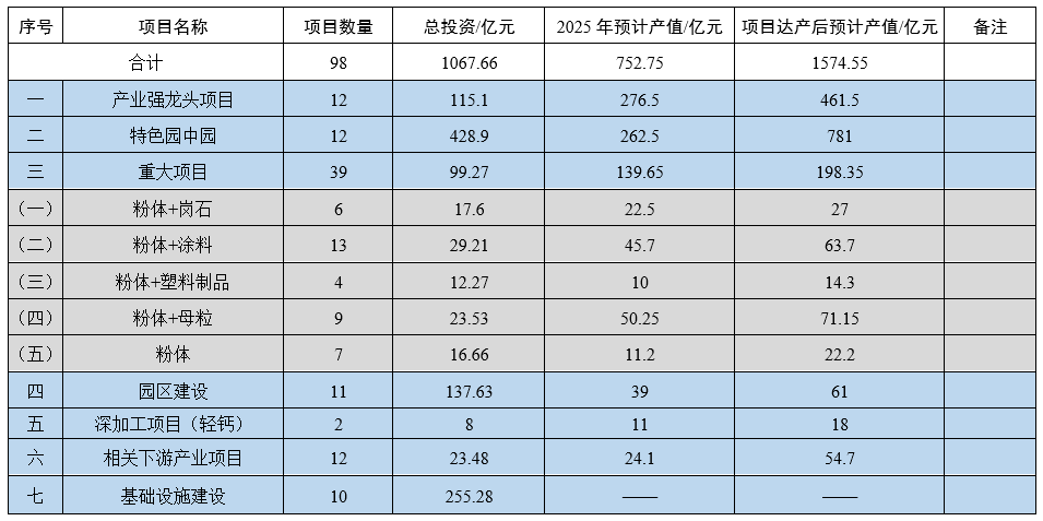 賀州市高端石材碳酸鈣產(chǎn)業(yè)“十四五”重大項(xiàng)目匯總表