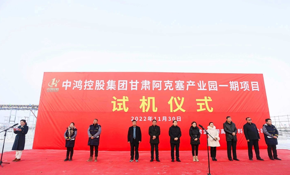 中國(guó)粉體網(wǎng)訊 11月30日,中鴻控股集團(tuán)有限公司阿克塞產(chǎn)業(yè)園一期項(xiàng)目舉行試機(jī)儀式。