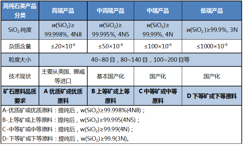 高純石英產(chǎn)品分類與礦石原料品質(zhì)要求
