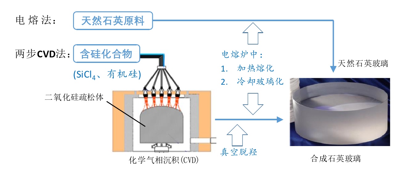 電熔法和兩步CVD法制備石英玻璃錠的流程對(duì)比圖