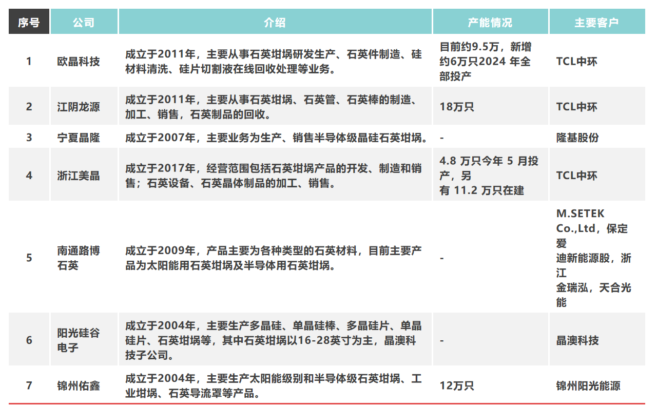 國內(nèi)主要石英坩堝生產(chǎn)廠商