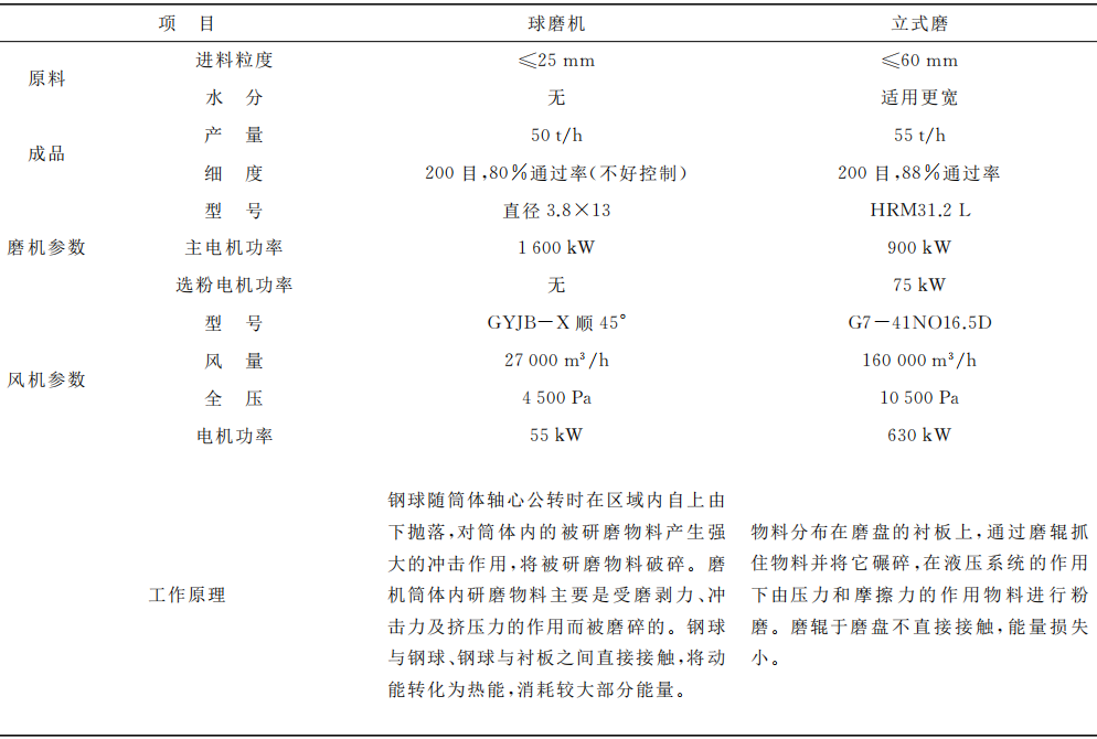 立式磨與球磨機(jī)生產(chǎn)線比較對(duì)照表