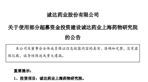 中國粉體網(wǎng)訊 12月28日,誠達(dá)藥業(yè)發(fā)布公告,根據(jù)公司的發(fā)展規(guī)劃及實(shí)際研發(fā)需要,公司擬使用部分超募資金購買位于上海市臨港奉賢園區(qū)D0205地塊的臨港智造園十一期項(xiàng)目6號廠房用于建設(shè)誠達(dá)藥業(yè)上海藥物研究院。本次擬購買的房產(chǎn)規(guī)劃建筑面積為8,058.82平方米(最終以臨港智造園十一期項(xiàng)目不動(dòng)產(chǎn)權(quán)證書記載面積為準(zhǔn)),截至目前臨港智造園十一期項(xiàng)目尚在施工階段且未竣工驗(yàn)收。