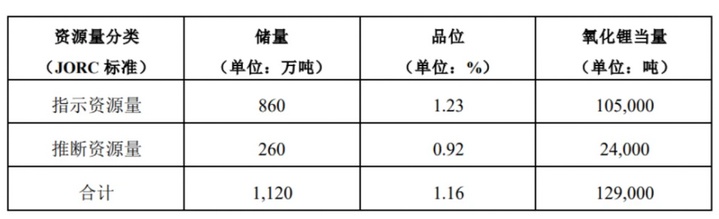 鋰礦資源總量為1120萬噸