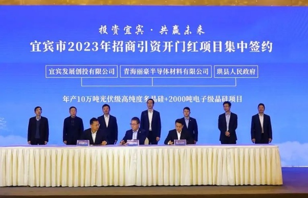 2023年1月6日,麗豪半導體三期10萬噸高純晶硅綠色能源項目簽約儀式在四川省宜賓市隆重舉行,宜賓發(fā)展創(chuàng)投有限公司、珙縣人民政府與青海麗豪半導體材料有限公司共同簽署年產(chǎn)10萬噸光伏級高純度多晶硅+2000噸電子級晶硅項目。