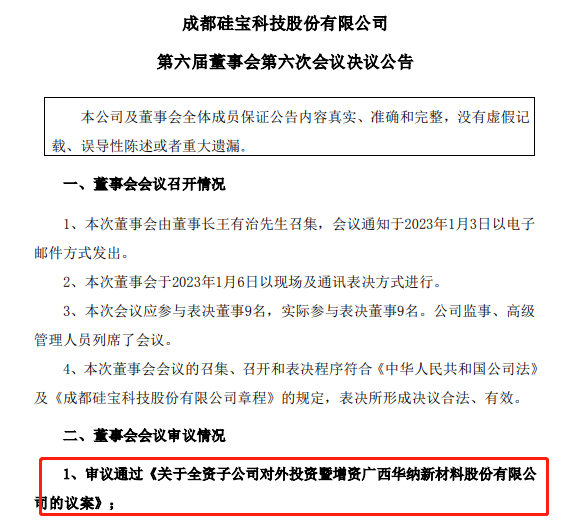中國粉體網(wǎng)訊 1月6日,硅寶科技公告,全資子公司硅寶投資擬以3000萬元對廣西華納新材料股份有限公司進(jìn)行增資,增資款專項用于目標(biāo)公司擴(kuò)產(chǎn)及日常生產(chǎn)經(jīng)營。