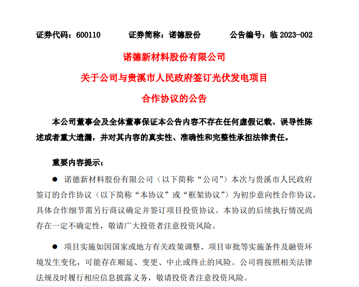 中國(guó)粉體網(wǎng)訊 1月12日,諾德股份(600110)發(fā)布公告,根據(jù)戰(zhàn)略發(fā)展規(guī)劃需要,基于貴溪市人民政府良好的光伏產(chǎn)業(yè)發(fā)展投資條件及前期與貴溪市人民政府合作的基礎(chǔ)上,公司與貴溪市人民政府就投資光伏發(fā)電項(xiàng)目達(dá)成初步合作意向,并簽署協(xié)議。