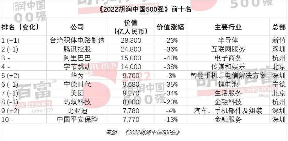 其中榜單的前100名中,共有12家光伏相關(guān)企業(yè),分別是華為、比亞迪、隆基股份、通威股份、陽光電源、晶科能源、晶澳科技、天合光能、TCL中環(huán)、東方希望、大全能源以及合盛硅業(yè)。