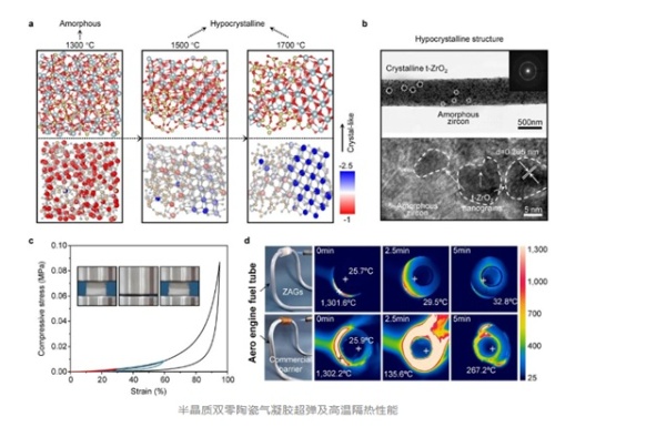 半晶質(zhì)雙零陶瓷氣凝膠超彈及高溫隔熱性能
