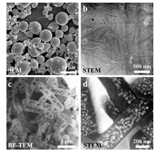 要想制造高韌性的氧化鋁陶瓷,制備出性能優(yōu)異的ZrO2/Al2O3復(fù)合粉體是重要前提。鄭永挺教授項(xiàng)目組首創(chuàng)了“Al-O2超高溫燃燒合成+熔體快速水冷”方法,研制了新型超高溫熔體水冷霧化設(shè)備,合成氧化鋁/氧化鋯亞穩(wěn)態(tài)微米粉(圖a),粉體內(nèi)部微觀結(jié)構(gòu)見(圖b),在燒結(jié)致密化過程中,原位誘發(fā)了具有高密度多級(jí)氧化鋯納米結(jié)構(gòu)、亞微米柱狀晶的氧化鋁基陶瓷(圖c, d),可實(shí)現(xiàn)多級(jí)納米結(jié)構(gòu)、柱狀晶、氧化鋯t-m相變等多因素的協(xié)同增韌,大幅度提高了陶瓷的力學(xué)性能,產(chǎn)品兼具極高的硬度(HV20GPa)和極佳的韌性(16MPa•m1/2),其技術(shù)原理可廣泛應(yīng)用于高性能先進(jìn)陶瓷的生產(chǎn)制造。