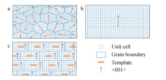 (a)普通陶瓷;(b)單晶;(c)織構(gòu)陶瓷微觀示意圖