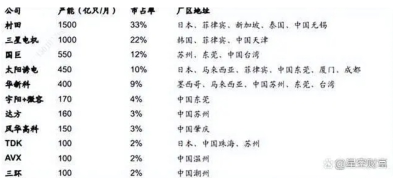 MLCC市場份額情況