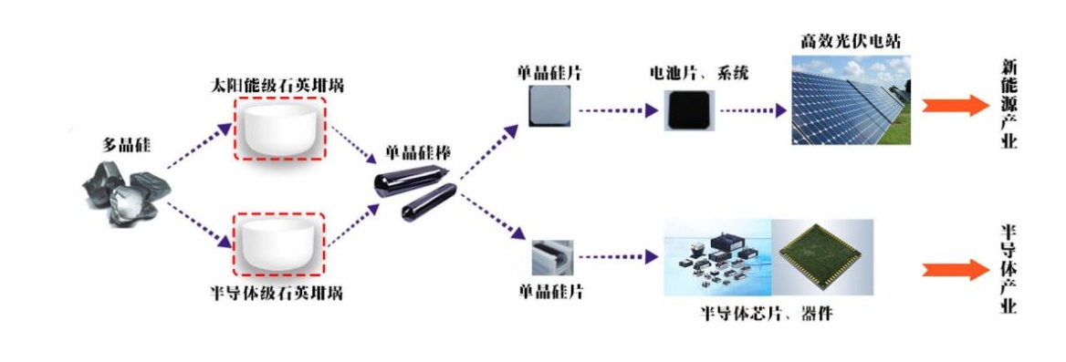 目前,單晶硅采用多晶硅為原料和直拉法生產(chǎn)工藝。在單晶硅生產(chǎn)中,石英坩堝是一次性使用的熔硅和晶體生長的關(guān)鍵材料,對單晶硅的生產(chǎn)成本和產(chǎn)品質(zhì)量都有直接重要的影響。