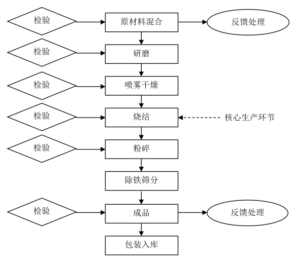 噴霧干燥環(huán)節(jié):加熱脫除漿料中的液相成分使?jié){料分散成為粉料,所用主要設(shè)備為離心噴霧干燥機(jī)。