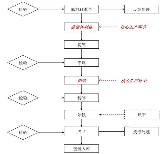 磷酸鐵鋰生產(chǎn)以固相合成法為主,其主要工藝流程圖如下: